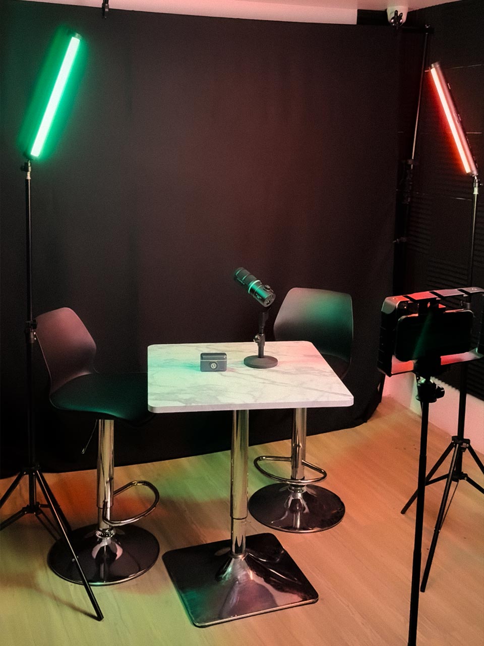 Nos especializamos en ofrecer un entorno profesional, funcional y estéticamente equilibrado para la producción audiovisual, grabación de podcast, programas, entrevistas y material multimedia.